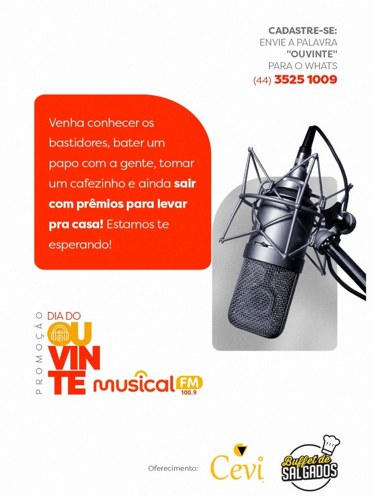📲 Como participar? É fácil! Basta enviar a palavra "ouvinte" para o nosso WhatsApp (44) 3525-1009 e fazer seu cadastro.